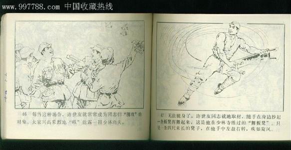 一天,轮到许世友和这个老兵一起值日。早晨刚起床,老兵就命令:“新兵蛋子,限你半个小时打扫完屋外,叠好全排的毯子,倒掉痰盂。”许世友忙前忙后,半个小时还没有完工。这时,老兵闲遛回来了。他张口就骂:“你这个狗日的干啥去了?为什么还没有干完?我日你的老祖宗!”许世友极为气愤,回骂道:“俺在干活,你去溜达。你要日人,就先日你祖宗吧!”老兵暴跳如雷。吼道:“你还敢骂俺!”他猛扑上去,扇了许世友六个耳光。许世友气上加恨,使劲踢了个“五花飞脚”,一下子踢到这个老兵的要命穴位处,这家伙便倒在地上,呜呼哀哉了!连长一看见许世友打死老兵,就带领官兵把他团团围住,下令说:“快把这个杀人犯捆绑起来送往团部,以军法严厉惩处。”好在许世友有个在步兵团二营当营长的舅父,他向团长说情才免了许世友一死。