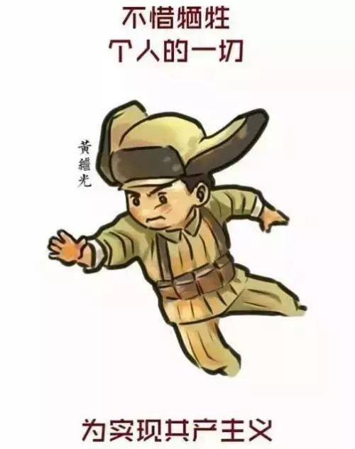 黄继光来到班里不久,战斗日益激烈,敌人的飞机狂轰一天比—天厉害。他出了一个主意,叫大家扎稻草人,将其穿上破旧的军装插在野地里,吸引敌人的火力,消耗敌人的弹药。看到敌人攻击这些假人,黄继光和战友都开心地笑了。黄继光用较重的四川口音说:“美帝国主义真是猪脑壳,没过年也放炮!”
