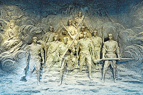 走进山东乳山马石山十勇士纪念馆,迎面可见10名战士的雕像,他们手持长枪、身背大刀,眼神坚毅,诉说着党和军队以命相救、与人民群众生死与共的英雄壮举。