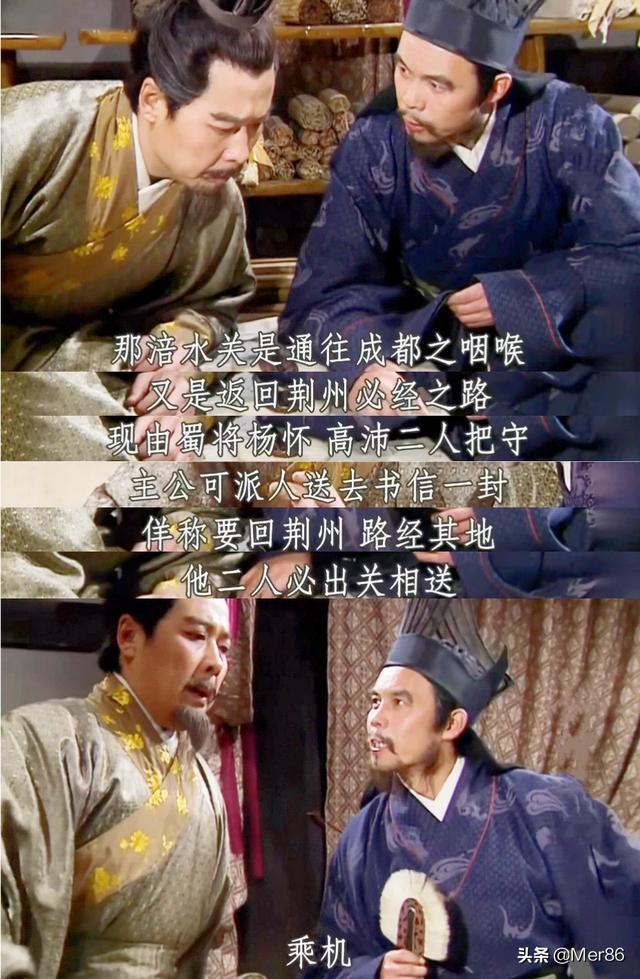 中策是让刘备先给刘璋带信,假意说荆州那边有事,自己要回荆州。待刘璋见信,让沿途的官员送别刘备时,建议刘备趁机干掉蜀中名将杨怀和高沛。并吞并他们的部队。然后再围攻成都。